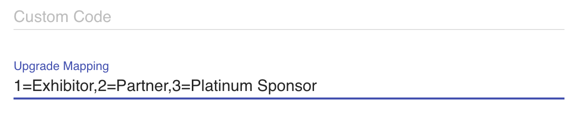 - If you have different sponsorship levels, A2Z assigns numeric upgrade Level IDs. For example, 1 means Exhibitor while 2 could mean Silver Sponsor and 3 could mean Gold Sponsor or whatever your upgrade levels are. In order to display the correct label for the upgrade levels, you will need to fill the field called Upgrade Mapping to tell the system what the numeric upgrade IDs actually mean.